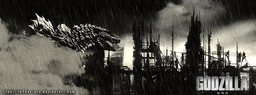 This one gives me the creeps. It shows a very feral and hungry Godzilla in black and white stalking a refinery or power plant in the rain. It recalls Godzilla 2014 set pictures of a strange figure with a briefcase at a nuclear power plant. Enjoy!